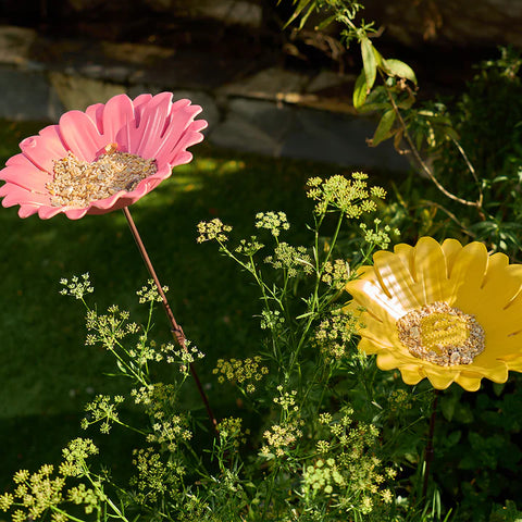 Enhance your garden and turn it into a bird's paradise with this charming Sunflower Bird Bath. Crafted from sturdy, eco-friendly materials offering both durability and sustainability. This bird bath features a detachable stake with an adjustable height. The fork base secures the stake into the ground and also doubles as a bird feeder, making it an attractive and practical addition to your outdoor space. Pole Extendable - Lengths: 60cm / 39cm /21cm. Flower size: 20cm x 5cm deep.