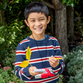 Get kids exploring the miniature world around them. The robust handheld microscope is super portable and specially designed for outside use in the field. Simple to operate, it comes with two magnifications (20x and 60x) and a battery-powered LED light to illuminate specimens. Simply position the ‘field of view’ over a selected object, adjust the focus dial to sharpen the image.
