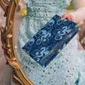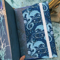 This fabric dust jacket features a magical Moonplume Dragon pattern for the book When The Moon Hatched by Sarah A. Parker, designed exclusively for Charlie & Fox by Carmen Di Mauro.