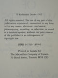 Signed and dedicated by author on title: "Robertson Davies. With all good wishes to Austin Seton Thompson - a fellow author -". Also inked: "Massey College, Toronto. December 4, 1975." to lower title.